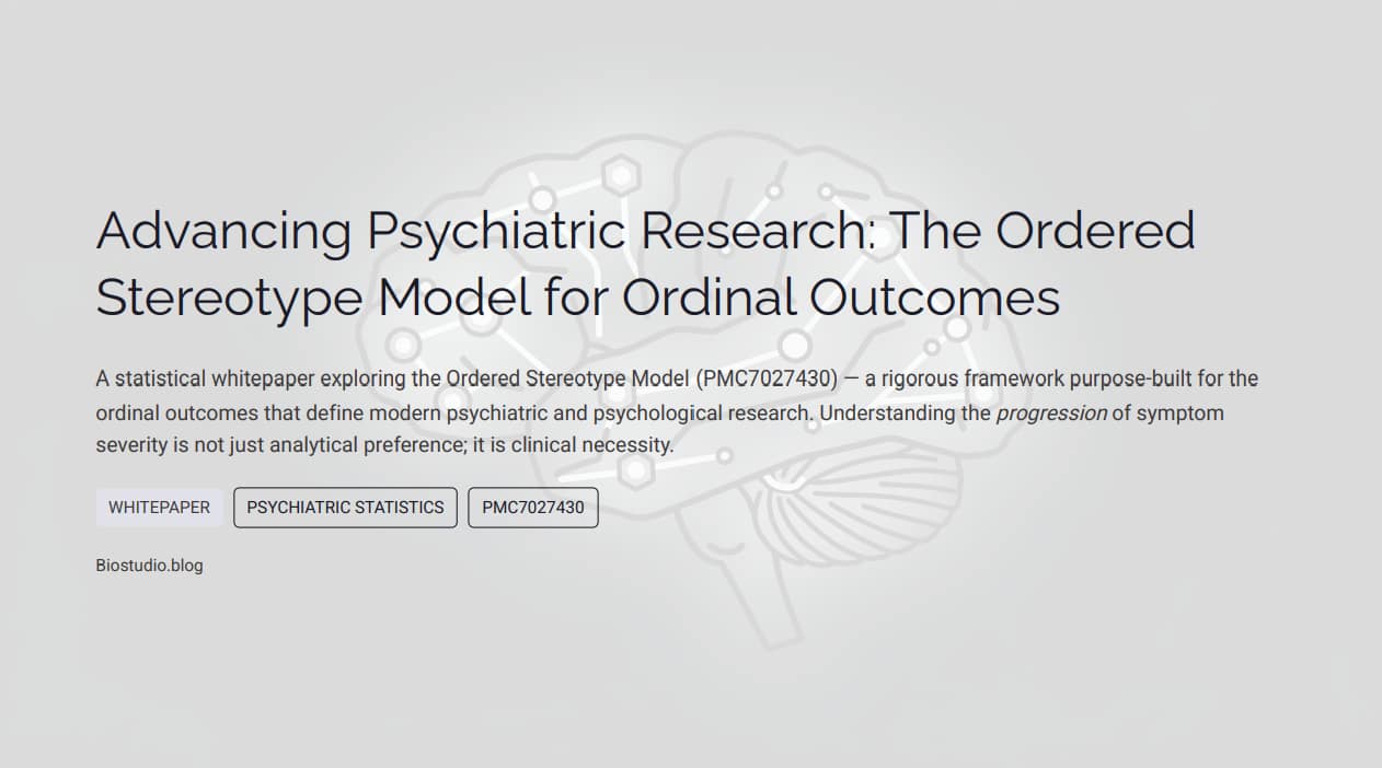 A statistical whitepaper exploring the Ordered Stereotype Model (PMC7027430) — a rigorous framework purpose-built for the ordinal outcomes that define modern psychiatric and psychological research.